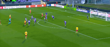 第23分钟,马祖雷克低射被扑,门前补射打破僵局,佛罗伦萨0-1雅盖隆
