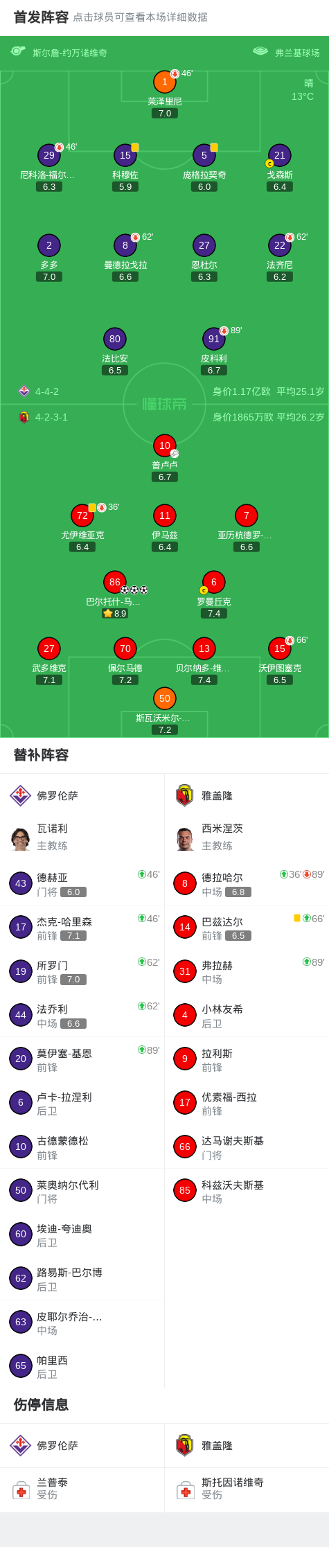 90分钟战报:总比分佛罗伦萨3-3雅盖隆,马祖雷克戴帽,双方进入加时
