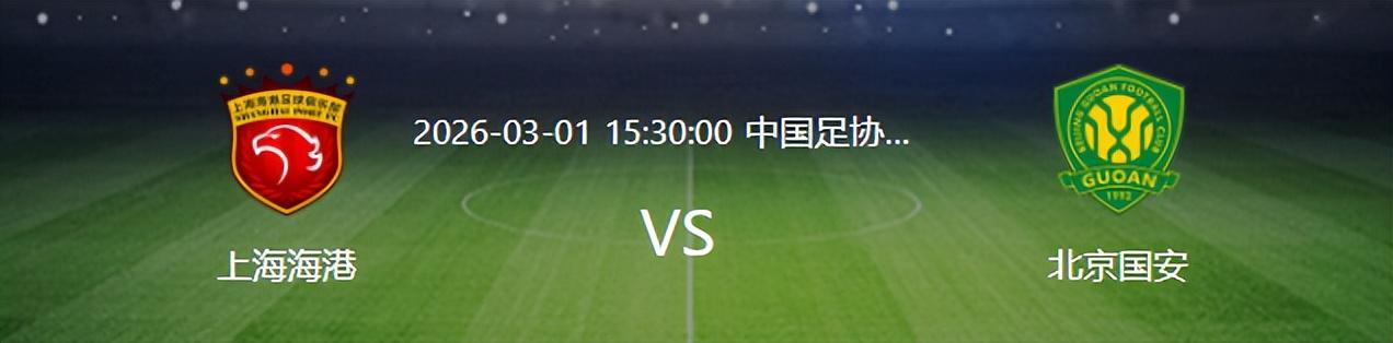 北京时间3月1日下午15:30,中国足球的开年第一战超级杯将激情上演,中超冠军上海海港对阵足协杯冠军北京国安。