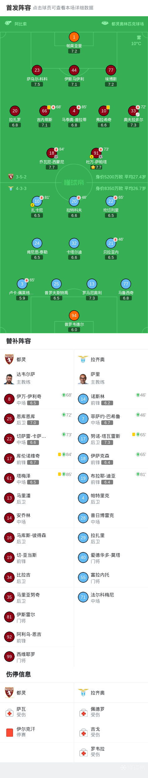 都灵2-0拉齐奥,西蒙尼破僵,萨帕塔进球