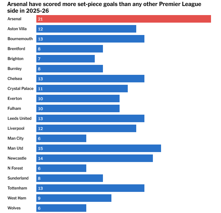 消息来源:https://www.nytimes.com/athletic/7080468/2026/03/02/arsenal-set-piece-goals-nicolas-jover-contract/